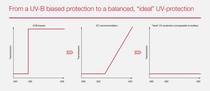 - A balanced protection from UV-B and UV-A is considered the Optimal Protection as it comes close to the “natural” uniform absorption by clothes