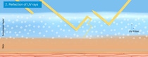 Some UV filters indeed can reflect (“mirror effect”) UV radiation, but this is not an exclusive property of mineral filters alone. All insoluble UV filters – inorganic and organic – are particles (crystals consisting of many molecules) and show this effect.