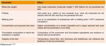 The following parameters effect the potential of a substance’s skin penetration: