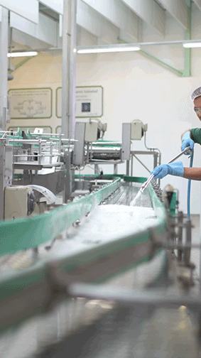 BASF’s experience with solutions for food & beverage processing mean we know what matters – and can provide the ingredients to make food-factory cleaning both effective and efficient.