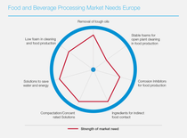 BASF has developed a choice of solutions with long-lasting foam that clings to vertical surfaces for up to 20 minutes, dissolving all the soil. Alkaline, acidic or hypochlorite, they deliver benchmark-beating cleaning results even at room temperature, and are easy to rinse off.