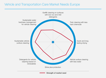BASF solutions are available that do the job perfectly with minimal environmental impact: alkaline cleaners for steel, glass and tarpaulin with alternatives to phosphates and solvents; acidic cleaners for tire rims or to remove scale from cleaning equipment; and neutral cleaners for the main wash that work safely with all materials, leaving vehicles clean and free from spots and streaks.