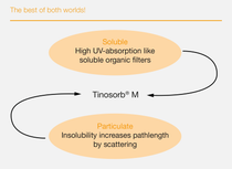 Demand is high for sunscreens with broad-spectrum UV filters. Tinosorb® M provides the broadest-possible UV protection based on micro-fine organic particle technology. The photo-stable UV filter functions in the water phase and thus combines soluble components in the oil phase. It is highly efficient at low concentration, free of preservatives and can be processed cold. Tinosorb® M is the filter of choice for sun care and face care concepts that meet the demand for broadest-possible protection.