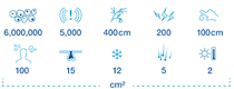 Up to 6 million skin cells can be found on every square centimeter of our body. It also contains: 5,000 sensory end organs – 400 cm nerve fibers – 200 pain sensors – 100 cm of blood vessels – 100 sweat glands – 15 sebaceous glands – 12 cold receptors – 5 hairs – 2 heat receptors.