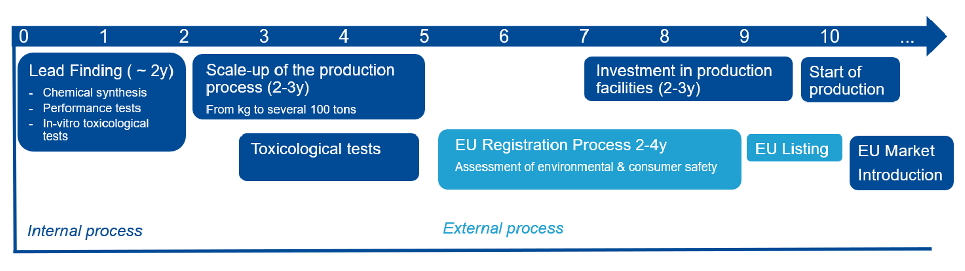 However, developing a single new, safe and performing UV filter is time and resource intensive – at least 10 years are required to go through all development steps from basic research, through product development, the approval process and all the way to up-scaling the production.