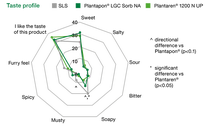 - The product containing SLS was rated directionally (p<0.1) higher than Plantapon® LGC Sorb NA in soapy and musty taste.