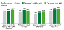 Compared to SLS, consumers agreed Plantapon LGC Sorb NA makes the mouth feel clean while Plantaren 1200 N UP makes the mouth feel fresh.